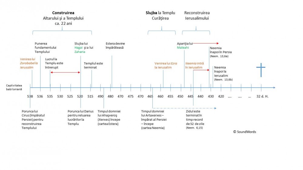 - Altarul, templul şi serviciul la templu erau ridicate, respectiv rânduită (cartea Ezra)